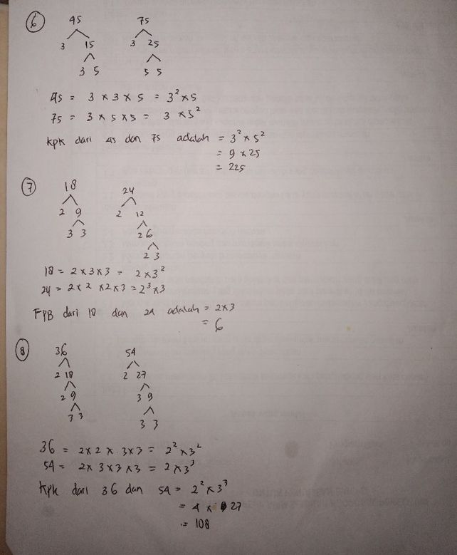 3 Bilangan kelipatan 6 adalah 6 12 18 24 30 36 42 48. Berapakah KPK untuk 24 dan 300 dengan metode faktorisasi prima. Carilah KPK dari 4 dan 8.